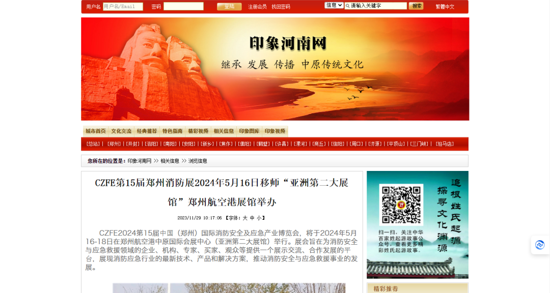 展会名称:CZFE2024第15届郑州国际消防安全及应急产业博览会
