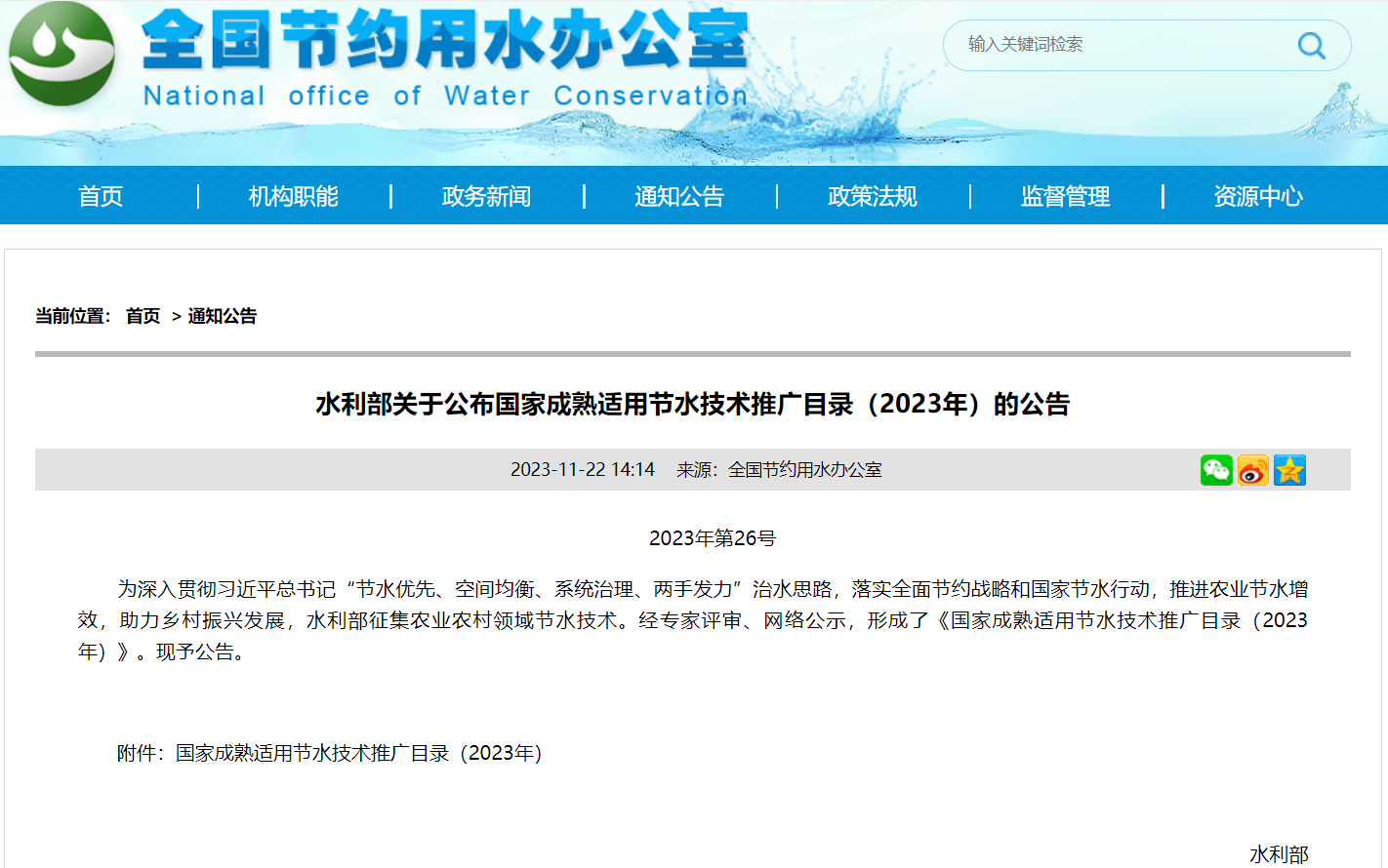近日,水利部全国节约用水办公室公示了《国家成熟适用节水技术推广目录(2023年)》,本年度全国仅入选34项,上海肯特“GNSS自动零点修正精准计量技术”成功入选其“农村生活节水技术”类目录中。