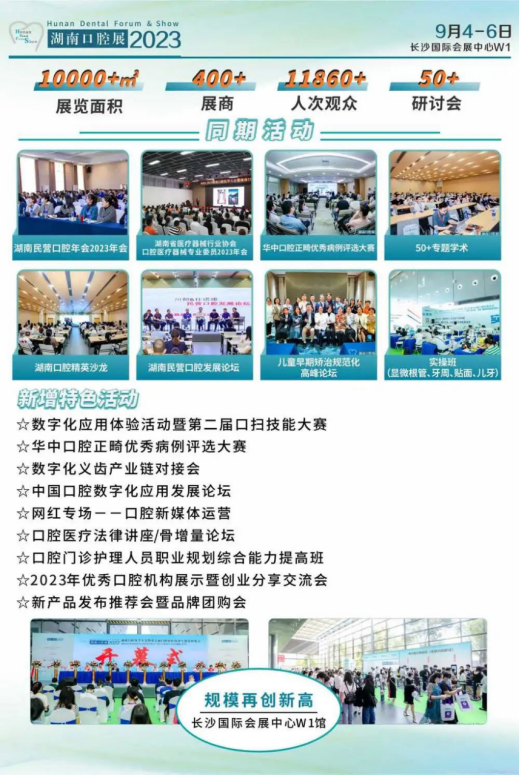 为了推进湖南省口腔医学的学术交流,更好地学习和应用国内外口腔医疗的新技术、新材料、新产品, 提高口腔医疗技术水平, 促进全省口腔医疗事业持续健康发展。由湖南省医疗器械行业协会口腔医疗器械专业委员会、南方牙科联盟联合主办,广州日晖会展服务有限公司承办的“HDFS 2023湖南口腔医学大会暨第八届口腔医疗设备与器材展览会”(简称:HDFS 2023湖南)于2023年9月4日至6日在长沙国际会展中心W1馆举办。