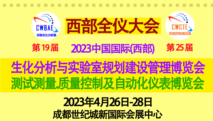 以“创新强基 智仪赋能”为主题的2023第19届中国国际(西部)生化分析与实验室规划建设管理博览会暨第15届测试测量.质量控制及自动化仪表博览会(西部全仪大会/CWWIAE)将于2023年4月26日-28日在成都世纪城新国际会展中心举办。