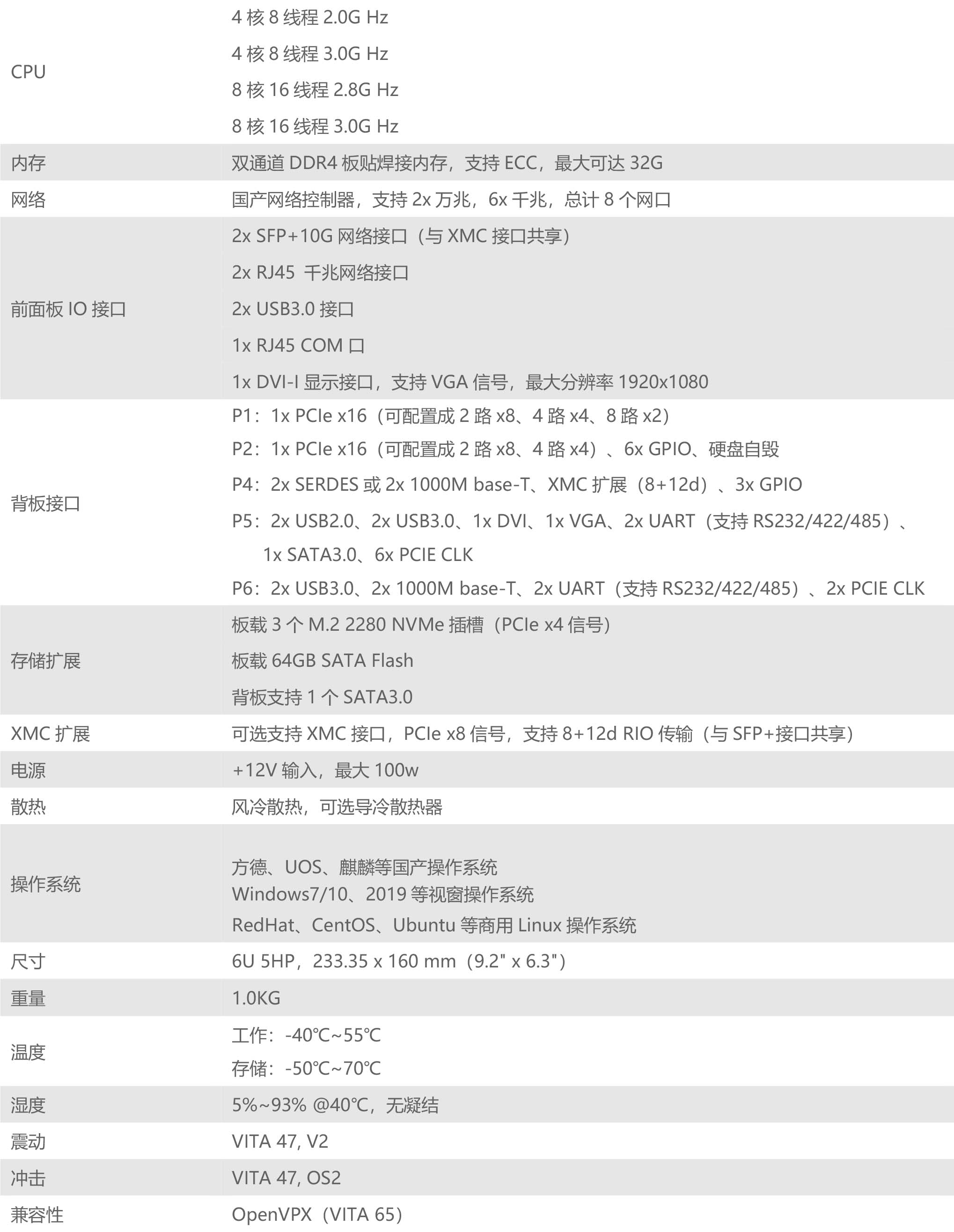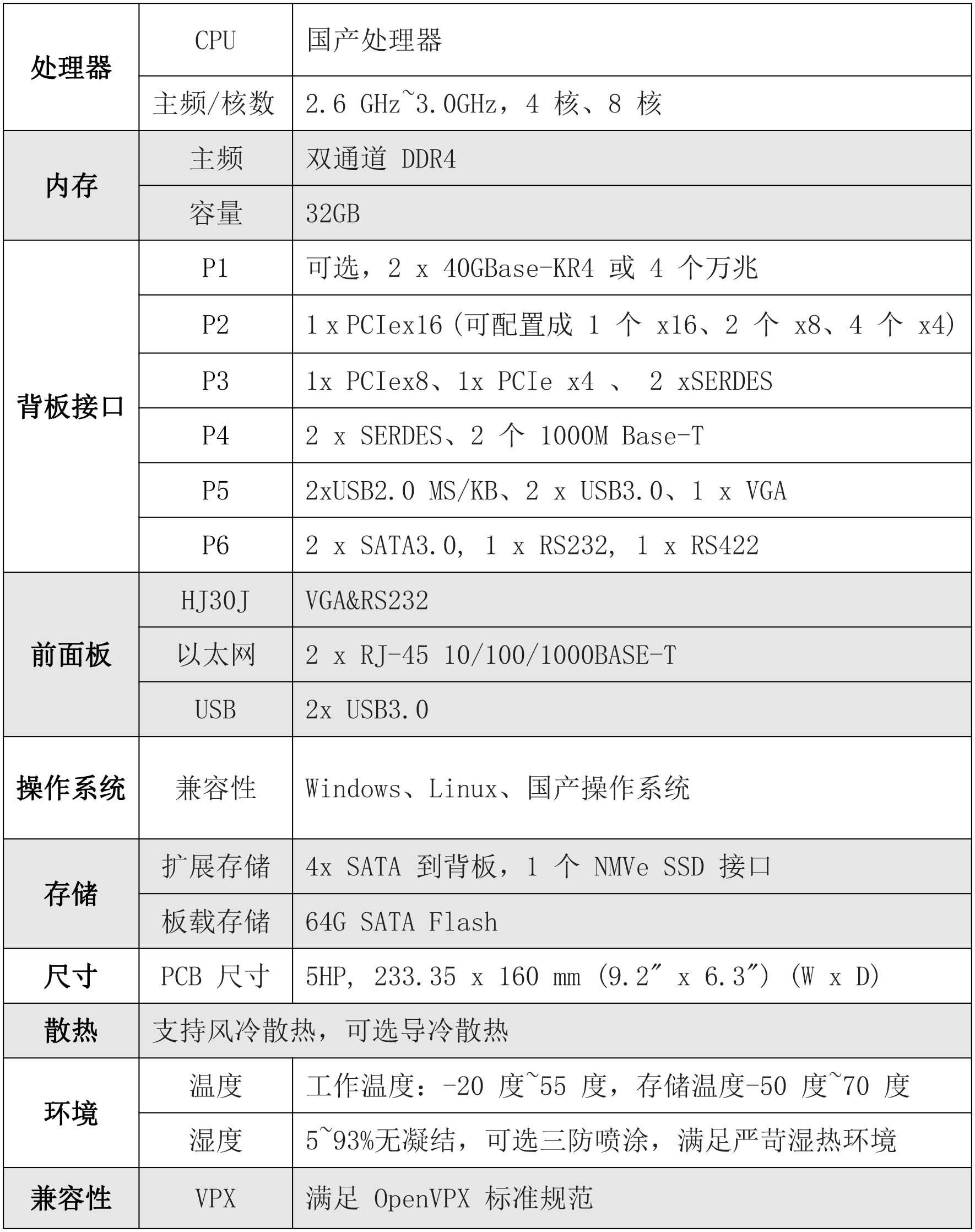 高性能国产处理器VPX计算刀片。搭载国产高性能多核处理器,背板支持多种总线及IO扩展,帮助提升系统的部署密度及空间使用率,降低系统成本。