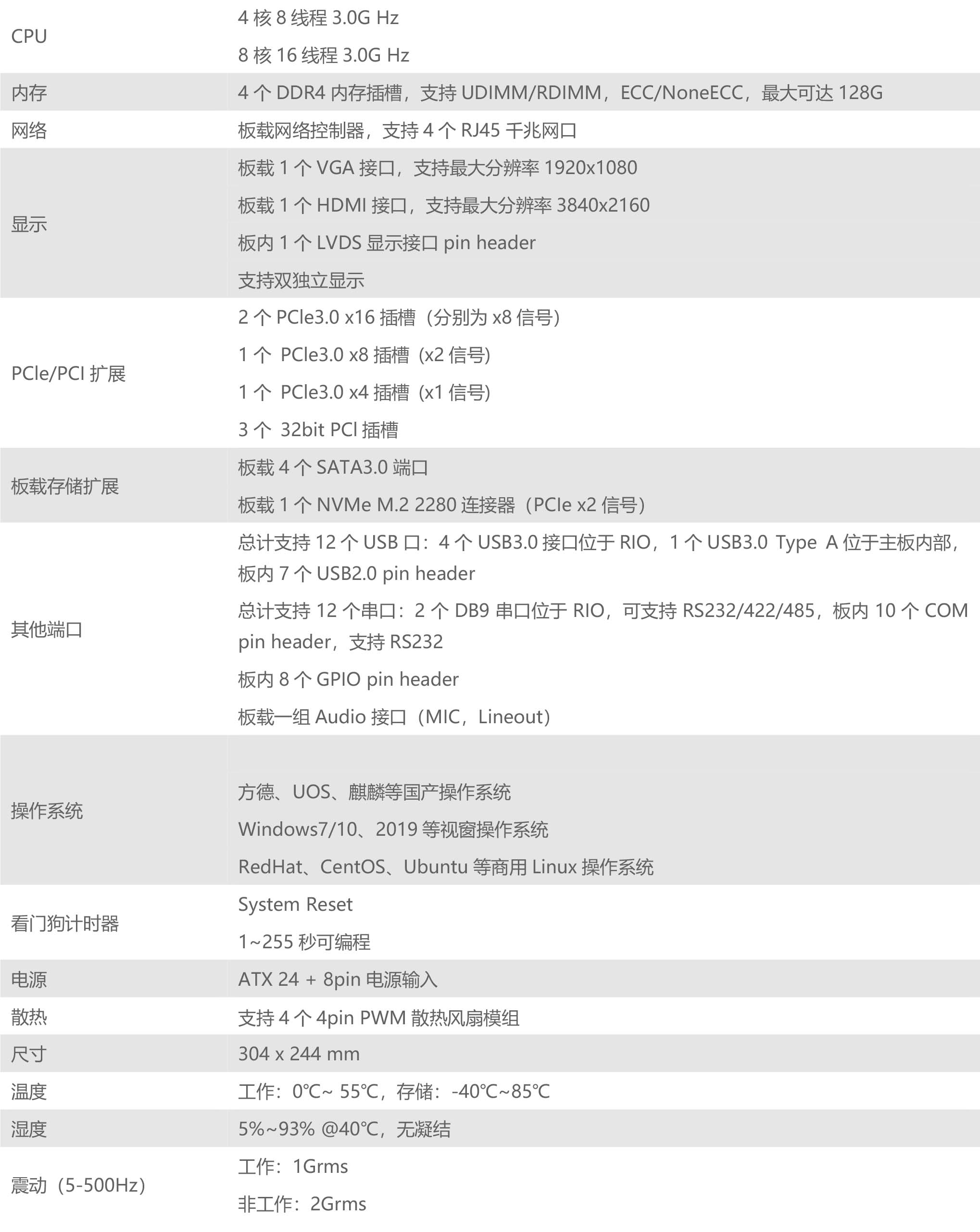 基于国产高性能处理器的ATX工控主板。产品采用国产高性能4核或8核处理器,支持PCIe/PCI插槽,及USB/COM等多种扩展端口。