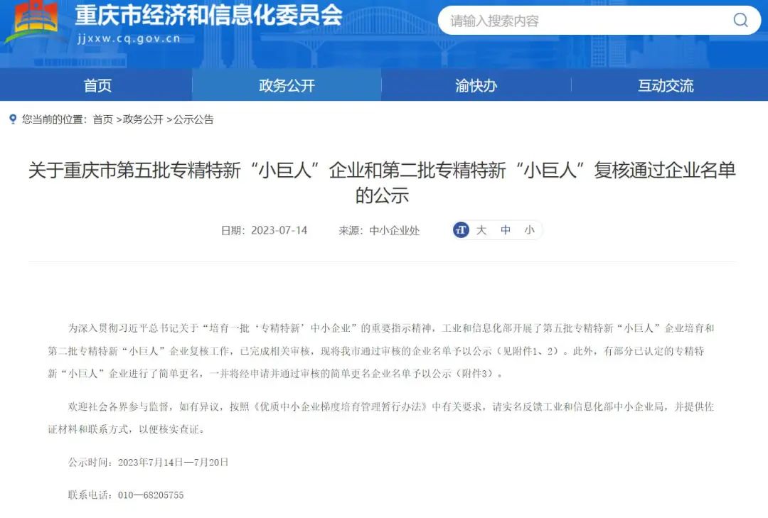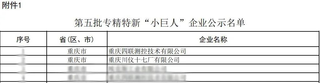 近日,重庆市经信委完成第五批国家级专精特新“小巨人”企业名单公示,川仪股份旗下四联测控和川仪十七厂携手入选名单。