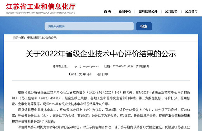 近日,江苏省工业和信息化厅公布2022年省级企业技术中心评价结果,南京新联电子股份有限公司顺利通过审核,被评为“优秀”。