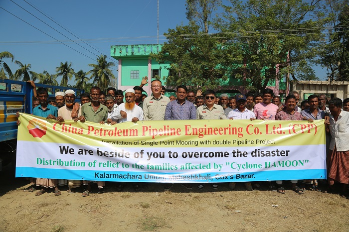 11月12日,中国石油管道局孟加拉国单点系泊项目代表向吉大港南部马什卡里岛村民捐赠1600张、共计3500平方米瓦楞板,为当地百余户村民灾后房屋屋顶修补重建送去急需建筑材料,受到了当地政府和村民的广泛赞誉。