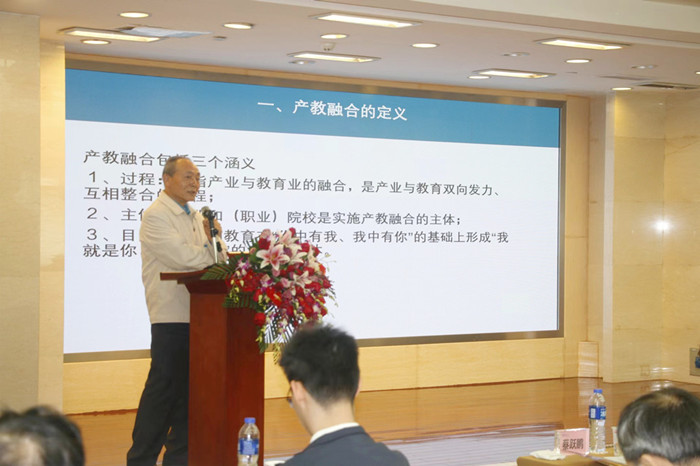 在大会的主旨演讲环节,广东省产教融合促进会欧阳农跃主任对中国和广东产教融合政策环境作了分析报告。