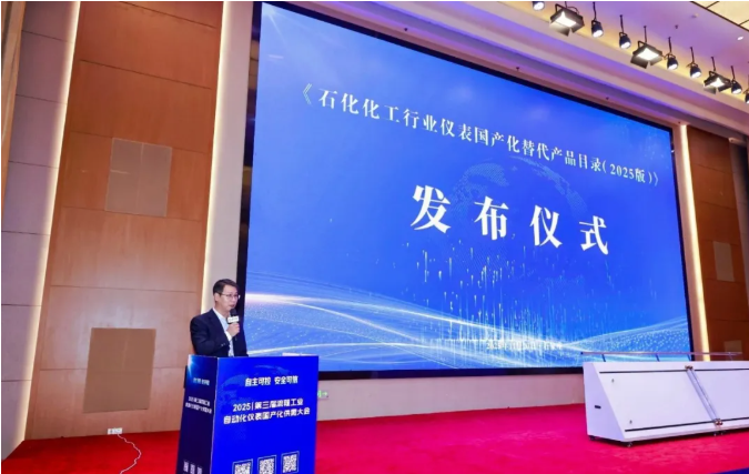 2025 年 11 月 21 日,由中国机电一体化技术应用协会流程工业分会与中能数智安科工程技术研究院联合编制的《石化化工行业仪表国产化替代产品目录(2025 版)》(以下简称《目录》)发布仪式在石家庄隆重举行。中国机电一体化技术应用协会荣誉会长李亚平、常务副会长王继宏、中国机电一体化技术应用协会流程工业分会理事长/中石油集团管理专家赵峻松、中国机电一体化技术应用协会流程工业分会常务副理事长/中石油集团公司高级专家/中石油华东设计院副总工程师林洪俊共同为《目录》揭幕,见证这一推动产业自主可控的重要时刻。