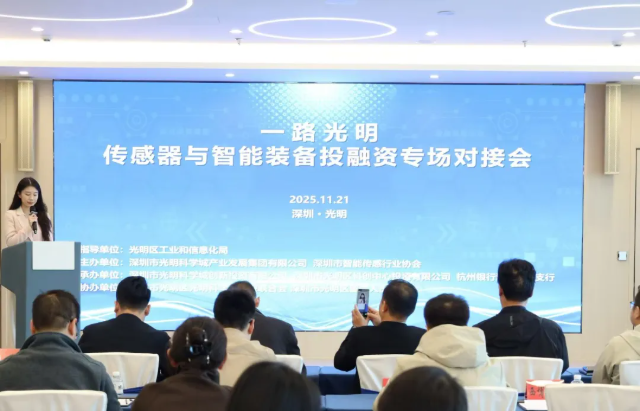 11月21日下午,由光明科发集团、深圳传感协会在光明区科技金融大厦共同举行“传感器与智能装备投融资专场对接会”,特普生科技、合肥美镓传感、北京视线科技、威星国际半导体、增敏科技、星感科技、模量科技、茂永协、力策科技、灵视微、稳顶聚芯等11个优秀项目参与路演,国宸投资、高新投、琨山资本、西博创投、创东方投资、投控东海、君茂资本、汇芯投资等专业投资机构,以及深开鸿、森霸传感、威勤电子等共10多家产业投资主体参与对接。