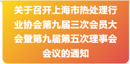 兹定于2025年12月3日上午,第二十一届上海国际热处理及工业炉展览会会场,召开上海市热处理行业协会第九届第三次会员大会暨第九届第五次理事会会议。