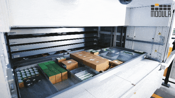 Modula智能升降货柜被部署在生产中枢位置,专门管理那些高频使用而数量繁杂的零部件,比如紧固件、门窗连接件、电控单元、小型五金件和工装夹具。 这些过去散乱堆放在线边物料架上的物料,如今被集中管理,随用随取。