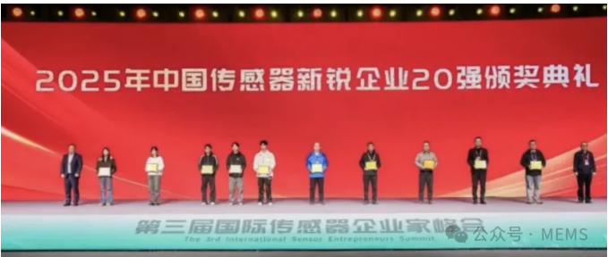 作为“2025传感器大会”的重要活动之一,第三届国际传感器企业家峰会上,举行了2025年中国传感器新锐企业20强颁奖仪式,以下是具体名单及相关传感器产品(排名不分先后):