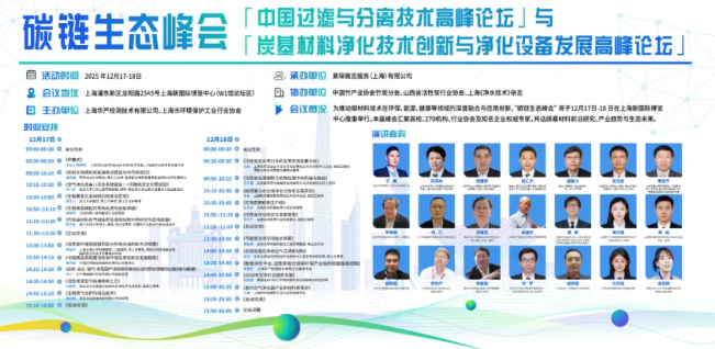 展会名称:(中国·净博会)2025第五届上海国际环境空气净化产业博览会暨高峰论坛/第六届上海国际活性炭产业链及应用展览会 举办日期:2025年12月17-19日 举办地点:上海新国际博览中心(W1馆) 展会介绍 论坛介绍 以“碳链生态峰会”为主题,本届峰会将汇聚高校、科研机构、行业协会及知名企业权威专家,共话碳基材料前沿研究、产业趋势与生态未来。 活动时间/2025 年12月17-18日