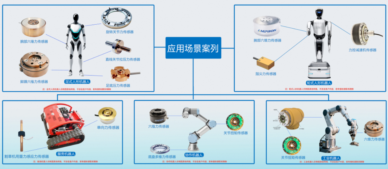 本次机器人行业年会上,安培龙展示了针对机器人不同关节、部位与应用场景的全系列力传感解决方案,同时含括了MEMS硅基应变片+玻璃微熔及金属应变片两种技术路线产品,具体包括: