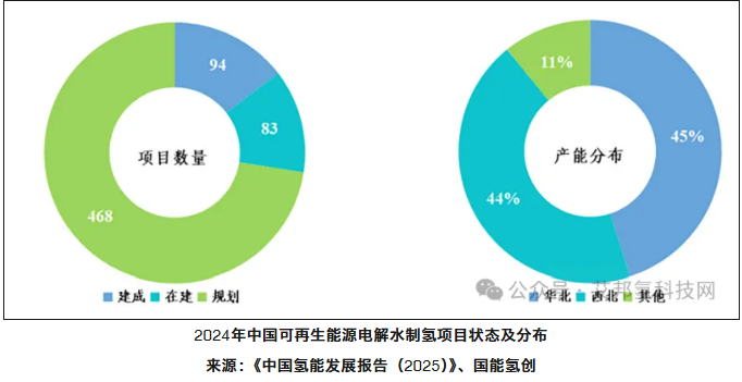 我国“十五五”规划建议也提出将氢能作为新的经济增长点。《中国氢能发展报告(2025)》显示,2024年中国氢能生产消费规模达3650万吨,位列全球首位,全国氢气产能超5000万吨/年,可再生能源电解水制氢已建成产能约12.5万吨/年,占全球总量的51%。