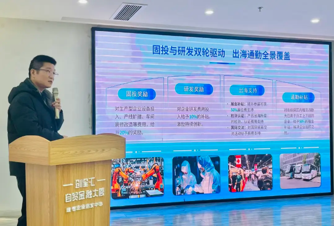 招商经理丁翔详细介绍了创星汇产业园情况。园区为集商务办公、科技研发于一体的多功能写字楼,地处中国光谷自贸区核心区及海关特殊监管区,致力于构建“一流环境+高端配套+顶级政策+专业服务”的国际化新兴产业聚集地。入驻企业可享受东湖综保区独有的三区叠加政策——国家自主创新示范区、自由贸易试验区、海关特殊监管区政策叠加,该政策优势在全国范围内独一无二。