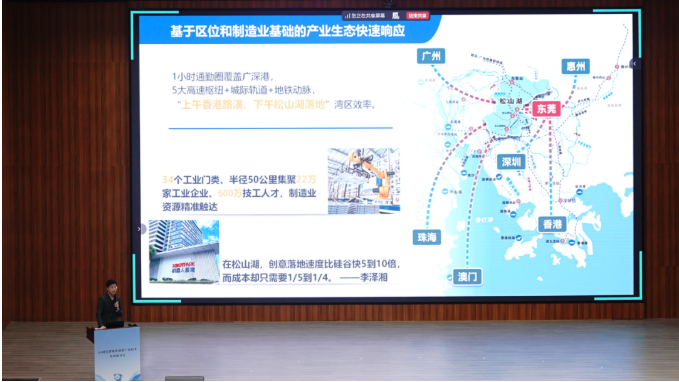 松⼭湖科学城集团产业开发公司副总经理吴思多分享了 “从要素配置到产业集聚的松山湖实践” 。松山湖依托大湾区高效的供应链体系与完备的制造业生态,可为企业提供 “上午香港路演,下午松山湖落地” 的极速响应。科学城集团通过专业化园区、百亿规模产投基金及场景开放,全力构建“空间+资本+场景”的全方位产业服务体系,支持智能传感器企业扎根成长。