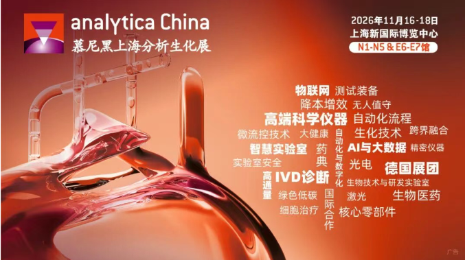 国家持续出台高端仪器产业扶持政策,不仅为国产仪器的发展提供了制度保障,更折射出中国在高端仪器领域加速实现从“跟跑”到“并跑”的坚定决心。“中国智造·临界突破”——这束国仪之光,正照亮着中国高端仪器产业的破局之路。 我国分析实验室行业潜力巨大,需求旺盛。面对巨大的市场需求和发展空间,扶植高端仪器发展,鼓励国内外市场互联、资源互通、技术互促,已经成为中国分析实验室行业发展的重中之重。因此,analytica China 2026在E7馆特别设立「国产分析仪器品牌展区」,汇集各大国产仪器品牌的“中国力量”,展示我国在前沿科技技术及高端仪器设备研发等方面取得的突破性成果。 该展区将集中展示通用分析仪器、光谱仪与配件、色谱仪与配件、质谱仪与配件、光度计、检测仪、显微镜及光学图像处理、光学分析设备、光学成像仪器、测试测量仪器、微波系统、联动系统、芯片实验室、流程分析、热分析仪器、电化学分析仪器、X射线仪器、水分测定仪、生物反应器、细胞培养等仪器设备和技术,广泛应用于科研、工业、材料分析、固体分析、智能制造、环境、食品、医疗卫生、检验检疫、生命科学、生物医药、新能源、农林牧渔等领域。 analytica China吸引了来自生物医药、生命科学、化学化工、教育科研、食品、环境、医疗卫生、疾病控制、检验检疫、第三方检测、电子半导体、工业制造等领域的专业观众。 慕尼黑上海分析生化展(analytica China)是世界分析、实验室技术和生化技术领域的旗舰盛会analytica 的在华子展,专门面向飞速发展的中国市场。凭借着analytica 的国际品牌,analytica China 吸引了来自全球主要工业国家的分析、诊断、实验室技术和生化技术领域的厂商。自2002 年成功举办以来,analytica China 已经成为中国乃至亚洲重要的分析、实验室技术和生化技术领域的专业博览会和网络平台。