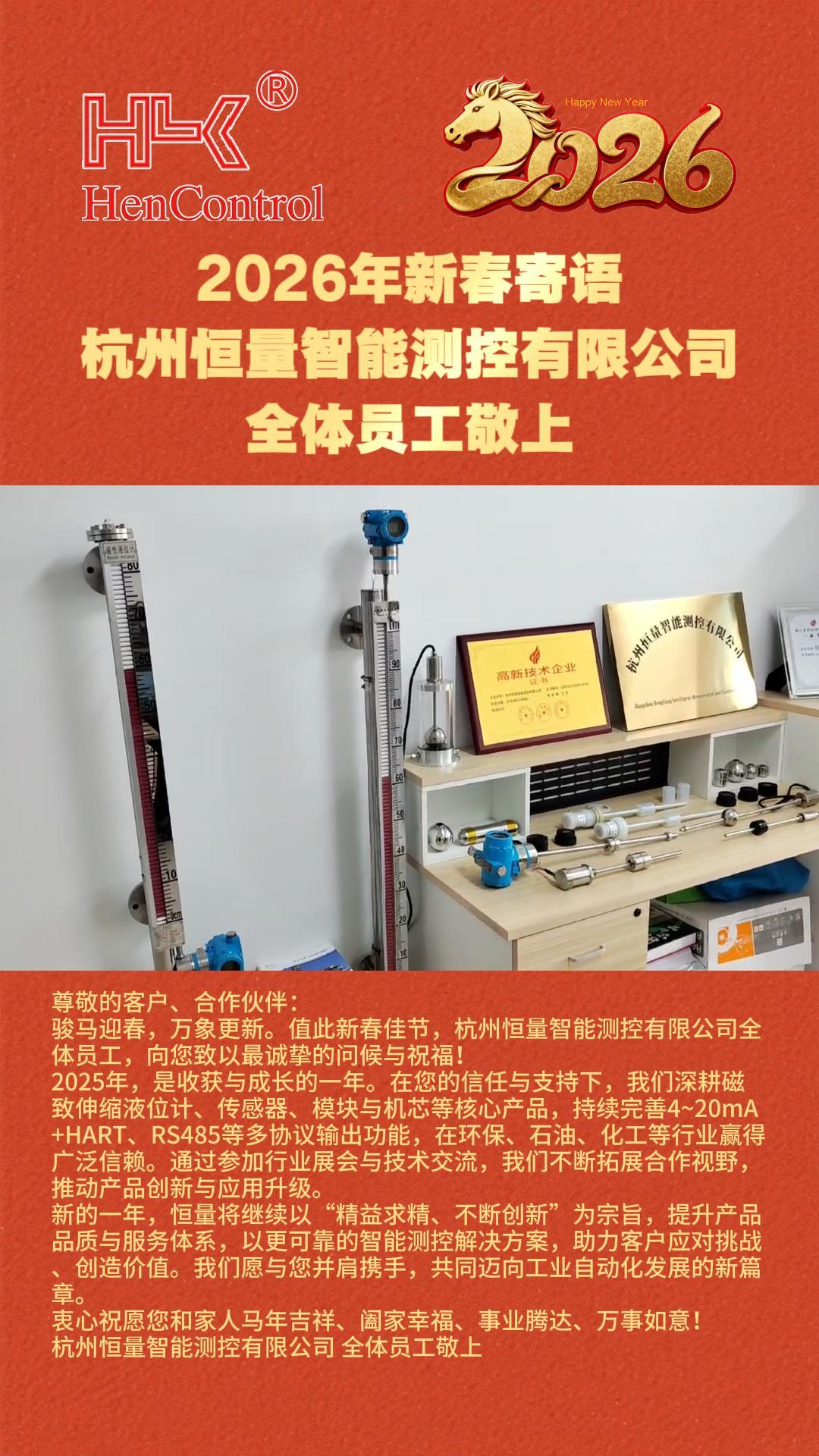 感谢您对恒量智能测控的支持与信任。作为国家级高新技术企业,我们持续深耕磁致伸缩液位计、传感器及模块等产品,以多样化输出功能与稳定性能,为环保、石化、制药、食品、工程机械等行业提供可靠测量方案。