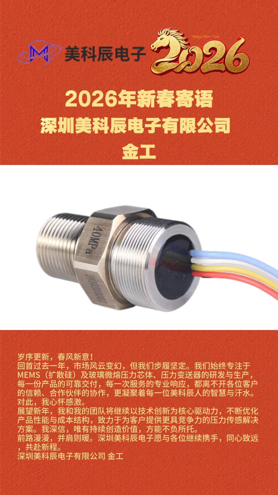 回首过去一年,市场风云变幻,但我们步履坚定。我们始终专注于MEMS(扩散硅)及玻璃微熔压力芯体、压力变送器的研发与生产,每一份产品的可靠交付,每一次服务的专业响应,都离不开各位客户的信赖、合作伙伴的协作,更凝聚着每一位美科辰人的智慧与汗水。对此,我心怀感激。