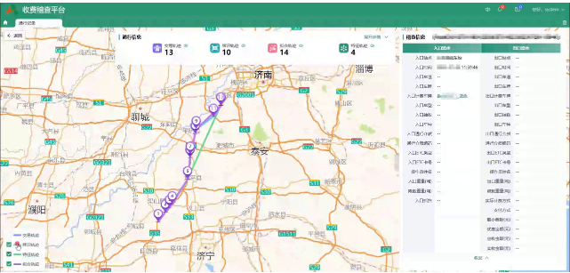 多源数据融合:全流程管理数字化闭环 齐鲁高速将稽核系统与一线稽查工作深度耦合,基于大数据能力将车辆特征、交易流水、牌识数据“三流合一”,通过三类数据的精准关联与交叉验证,完整还原车辆真实行驶路径,破解跨区域行程核查难、违规证据链不完整等难点。针对U/J型行驶、套牌换牌、假冒绿通等十余类高频违规场景,系统构建了专属智能稽核模型,自动判定与秒级预警异常通行行为,形成针对性数字化处理预案。