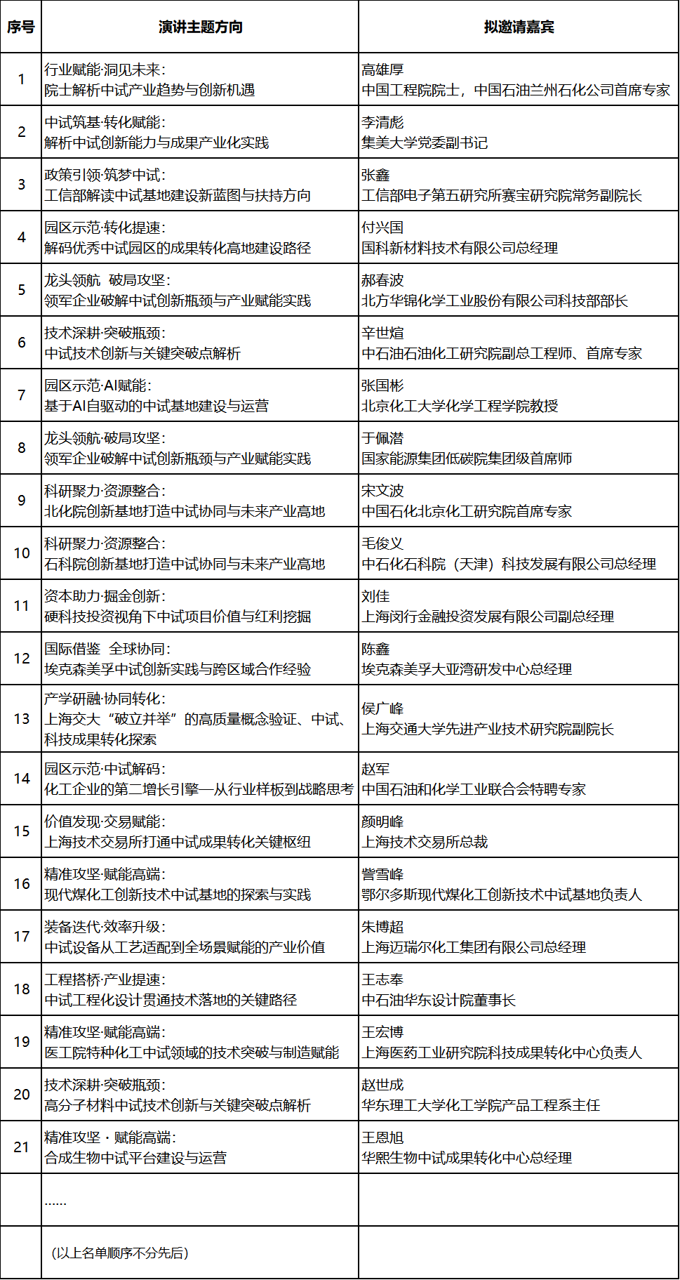 3.国家级、省级化工中试平台运营主体负责人,化工园区党政领导;