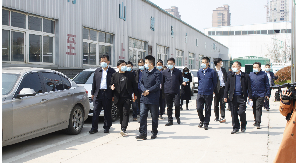 开封市政府刘副市长和祥符区王区长一行莅临青天伟业,公司总经理张盛海,外贸部经理胡洋,财务总监田永新陪同分别在电磁事业部,气体事业部及青天仪表科技园二期现场参观!