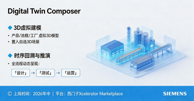 这些创新共同强化了工业AI的执行层,让智能系统能够在现代生产环境中将数字洞察转化为可靠行动。新一代可编程逻辑控制器S7 200 SMART G2在性能与存储容量方面实现显著提升,可作为设备的大脑对其进行实时协调与管理;S200紧凑型伺服系统可将数字指令转化为高精度的机器人与设备运动,同时降低系统复杂度与成本;预测性维护软件SiePA Pro可分析关键资产的运行数据,提前识别异常并避免代价高昂的停机。为进一步推动先进工程技术与AI能力的落地,西门子与阿里云宣布进一步深化双方合作伙伴关系。双方将整合西门子仿真产品组合与阿里云的算力及基础设施,面向中国市场客户,提供以基础设施即服务(IaaS)模式交付的计算机辅助工程(CAE)能力。通过这一合作,西门子计划在阿里云上验证并部署其CAE云解决方案,为客户提供包含虚拟仿真设备和高性能计算(HPC)集群在内的可扩展云仿真环境,助力工程团队更加高效地运行复杂仿真任务,同时可充分借势阿里云基础设施的弹性与灵活扩展能力。此外,双方还将基于阿里巴巴千问大模型,为西门子产品生命周期管理(PLM)软件的AI能力升级提供支持,为AI工程工作流与智能化产品研发开辟全新可能。数字孪生升级:Digital Twin Composer打通虚实闭环在CES 2026上,西门子重磅发布Digital Twin Composer,将西门子全面数字孪生、基于NVIDIA Omniverse库搭建的仿真系统,以及实时采集的工程实景数据集于一体。
