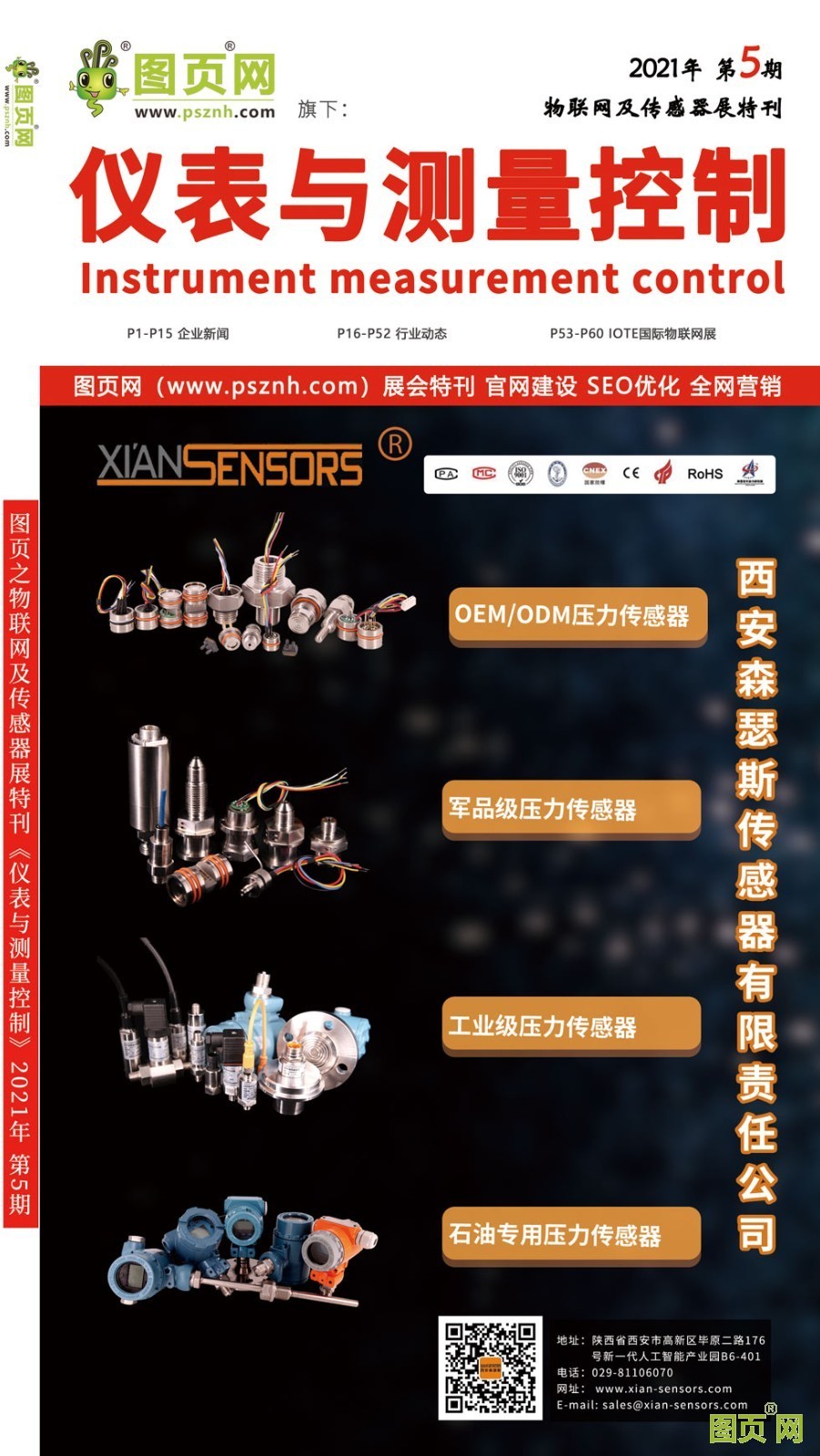 图页网旗下双月刊《仪表与测量控制》成功出刊了!物联网及传感展为主题的特刊广告厂商爆棚了,近六十多家企业选择了它做品牌推广。《仪表与测量控制》与图页网相互结合,扫描二维码进行关注,让厂商主用户的信息都能以图文并茂的方式展现出来,让人耳目一新。关注后就能保存《仪表与测量控制》双月刊,电子版的广告稿和企业画册可以随时、随地、随心传播,企业主也可以进行修改和补充,方便之极。《仪表与测量控制》将在各大型展会进行派发.不仅每个收录企业会收藏,采购商也将其视为行业采购工具书,已经有20年传感器技术经验西安森瑟斯传感器有限公司入驻《仪表与测量控制》2021年第5期之物联网及传感器展特刊的小封面。