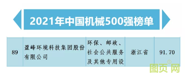近日,2021年(第十九届)中国机械500强研究报告发布会在北京举行。会议上公布了中国机械500强企业名单,盈峰环境榜上有名,位列第89位,充分彰显出公司强大的综合实力和行业影响力。