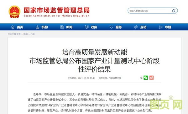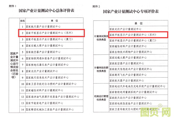 为贯彻实施《市场监管总局关于加强国家产业计量测试中心建设的指导意见》,全面了解各国家产业计量测试中心能力建设、科研攻关和服务产业等情况,12月20日,国家市场监督管理总局对2020年底前批准筹建或验收的国家产业计量测试中心进行了阶段性评价,并将其工作情况进行通报。我院国家平板显示产业计量测试中心(苏州)在已验收的14家国家产业计量测试中心总体评价中综合排名第2,并在专项评价中被评为计量测试服务优秀典型。
