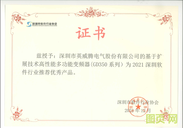 2022年1月,深圳市软件行业协会公布2021“优秀软件产品”名单,在经历了资料审核与专家评审等多轮筛选后,英威腾“基于扩展技术高性能多功能变频器(GD350系列)软件”荣获此项殊荣。