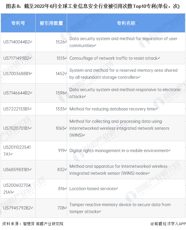3、全球工业信息安全行业专利竞争情况