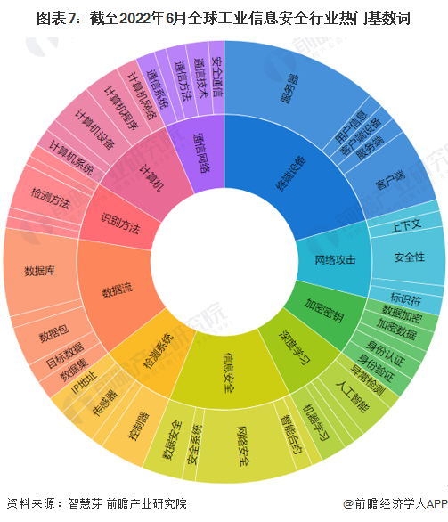 全球工业信息安全行业的前十大热门技术词包括计算机、通信网络、终端设备、网络攻击、加密密匙、深度学习、信息安全、检测系统、数据流和识别方法。进一步细分来看,工业信息安全技术热门词包括服务器、安全性、标识符、身份认证等。