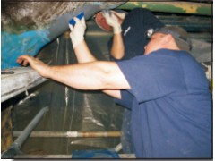 金覆CP+AC和金覆CL+AC被用来修复管道,随后用一层玻璃纤维网来加固修复和提高管道的架构整体性。最后再涂抹第二次金覆CP+AC和金覆CL+AC来完成整个修复。