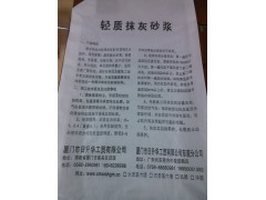 厦门市日升华工贸有限公司经过多年不断地努力经营,在砌筑材料行业已赋有盛名,公司现坐落于厦门市集美区后溪工业园,是一家可持续发展的个体经营,公司本着质量,信誉,争创严谨的经营理念,立足福建省,致力于为装潢装修公司提供质量好的轻质抹灰砂浆。服务热线:0592-2960981