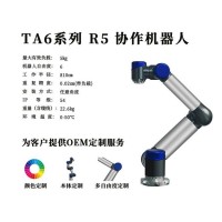 深圳泰科TA6系列协作机器人是泰科智能自主研发的6自由度的协作机器人,具有拖动示教、安全防碰撞等功能,可以直接与人协同工作。 采用自主设计的RJS系列关节模组,既轻便灵活、运行平滑柔顺,同时满足负荷的需求。既有强大的通用性、 协作性与开放性,适用于物流装配、流水线生产、上下料、AGV、3C电子、科研、医疗等行业。TA6系列协作机器人安装简单(安装方式任意角度)及用途多样化,不管您是什么行业或者产品,都可以很好的融入到各个生产流程,提升您工厂的生产效率,并更好的节约人工成本。