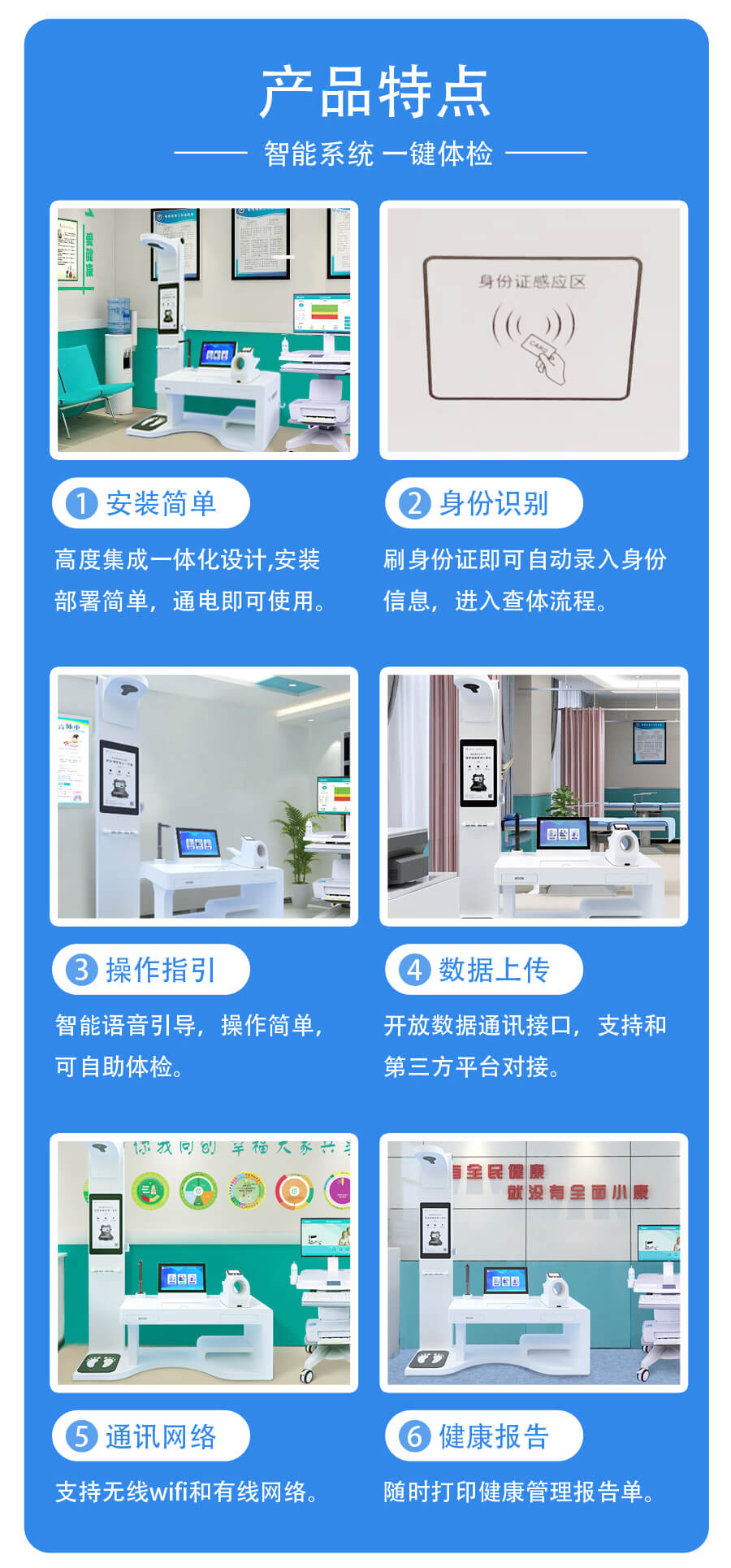 4、提供个性化健康管理与指导:上正华瑞公卫大型体检机不仅能够记录个体的生理数据,还能结合个体的生活习惯、家族病史等信息,提供个性化的健康评估和建议。这有助于个体更好地了解自己的健康状况,采取针对性的预防措施,提高自我保健能力。