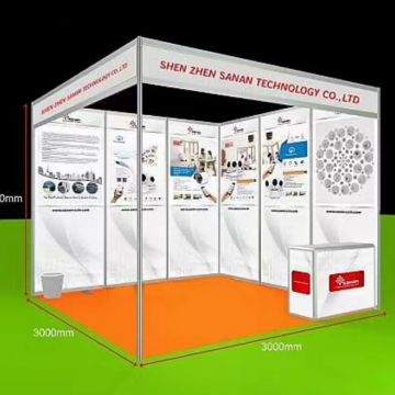 (3m×3m 楣板×1,问询桌×1,折椅×2, 射灯×2,5A 插座×1,地毯×1。)