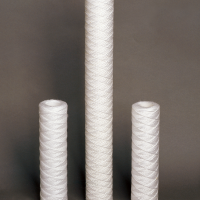 线绕式滤芯采用过滤纤维束按特定工艺精确绕制在滤芯内的多孔骨架上,形成不同的精度,采用内紧外松的结构,深度过滤效果出色。过滤精度范围1-50μm,预过滤效果极好,成本经济,被大量用于常规公称精度过滤。