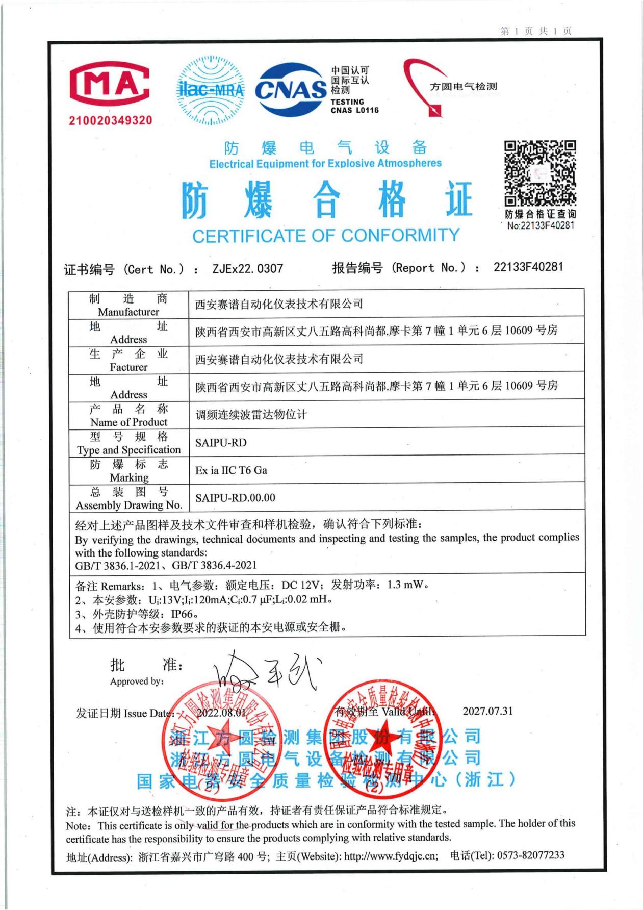 SAIPU-RD1200-01-120Ghz调频雷达液位计-SAIPU-RD1200-01-120Ghz调频雷达液位计价格-SAIPU-RD1200-01-120Ghz调频雷达液位计报价-SAIPU-RD1200-01-120Ghz调频雷达液位计厂家信息一、产品概述: SAIPU-RD1200-01系列型调频连续波雷达物位计是一种采用微波技术的非接触式物位探测仪器,专用于检测静态物体的位置,以辅助进行体积的测量和管理。赛谱自仪 SAIPU AUTOMATIC雷达产品采用LFMCW技术,以锯齿波为调制信号,天线波束角度极小,工作在122GHz(太赫兹),能够探测雷达天线平面与物体平面之间的距离,分辨率达到0.01mm,测量距离30m。二、技术指标1. 测量范围:100mm—30000mm2. 显示精度:1mm3. 测量精度: ±3mm4. 读取时间:6s5. 载波频率:120GHz6. 波束角度:4°7. 测量间隔:400ms(可设置)8. 数字输出:RS485 MODBUS9. 接口参数:115200(可设置),N8110. 模拟输出:4mA—20mA11. 供电电压:DC 8V—DC 30 V12. 工作电流:140mA@DC 12V13. 工作温度:-35℃—85℃14. 过程压强:常压15. 显示屏幕:OLED 128×6416. 外壳材质:316L17. 防护等级:IP67 三、产品原理: 与脉冲雷达不同,连续波雷达接收机处理的是目标回波与雷达发射信号混频后的差拍信号,这也进而促使连续波雷达更容易实现高的距离分辨率。另外,连续波雷达发射信号的时宽决定了其系统的距离分辨率,时宽越大距离分辨率越高。 雷达发射信号的能量越大检测目标的能力就越强,发射信号的能量由发射信号的功率与发射信号时宽的乘积决定,根据脉冲雷达信号能量式子的推导可以得出,线性调频连续波雷达的等效脉冲功率比本身所发射的功率要高出其发射信号的时带积倍数,因此线性调频连续波雷达所发射的信号的能量比具有相同参数的脉冲雷达所发射的信号具有的能量要高很多,所以相比其他形式雷达,其对目标具有更高的检测能力。 相较于传统的低频脉冲雷达,毫米波调频雷达具有波束角度小和信噪比高的,在大量程下能够实现狭小空间的安装和测量,降低了对安装施工的要求,减少了集成商的成本。同时对于来自现场环境的干扰,调频连续波雷达能够通过变化积累时长达到有效检测的目的,抗干扰性能大大优于脉冲雷达。四、接线说明设备采用TRVVP屏蔽5芯线缆连接,线芯直径为0.75mm2,外径为6.8mm。序号线芯颜色含义备注1红色电源输入正极对地DC 8V—35V2黑色电源地3黄色RS485 A / Data+4绿色RS485 B / Data-5白色4mA—20mA输出串接电阻不大于500Ω五、屏幕交互方式