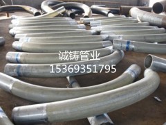 中频弯管是将两根公称通径相同的管子放在一起,通过加工使管路作90度转弯,中频弯管机采用中频电能感应对管子进行局部环状加热,同时用机械拖动管子旋转,喷水冷却,使弯管工作连续进行。弯管加工工艺可以分为很多种,主要有拉弯、绕弯、推弯等多种方这些方式又可以分为冷弯和热弯两种弯制状态。对于不同的弯管所应用的加工技术是不同的,不同弯管的特性也是不一样的。中频弯管除含碳外一般还含有少量的硅、锰、硫、磷按用途可以把碳钢分为碳素结构钢、碳素工具钢和易切削结构钢三类,碳素结构钢又分为建筑结构钢和机器制造结构钢两种;中频弯管的成型工艺过程是复杂的,需要根据不同的材质和用途进行焊接,在一定的压力下进行逐渐成形。中频弯管的成型需要按照一定的工序进行,严格遵守相应的流程过程,否则生产出的中频弯管就会产生质量问题。中频弯管在我国的工业中被广泛应用。中频弯管根据长期生产制做,在多次失败中总结出,比较合理的科学的新经验,加入一定量的稀土元素改善钢的合金质量。在电力、矿山、冶金等行业,物料的输送、输出、都是采用近距离、高压输送,管道承受着相当大的压力,并经受很严重的磨损,单一材质的管道很难满意此工况的要求。中频弯管是用加热圈套在钢管上,四周离钢管约15mm的空隙,外侧略+2mm,内侧略-2mm。φ800×30加热宽度约55mm,φ1200×30加热宽度约60mm。在弯曲的过程中,配合8Mpa的强风冷却降温,使其弯曲时保持规定加热宽度温度在850°左右,这样钢管自身有两端冷却的圆度部分做支撑,使其弯曲部分始终在一个窄小宽度里进行,从而达到钢管弯曲成形后圆度不变或很少变形的效果。中频弯管主要用于加热直缝管、无缝钢管,通过中频加热后,达到效果才能生产。